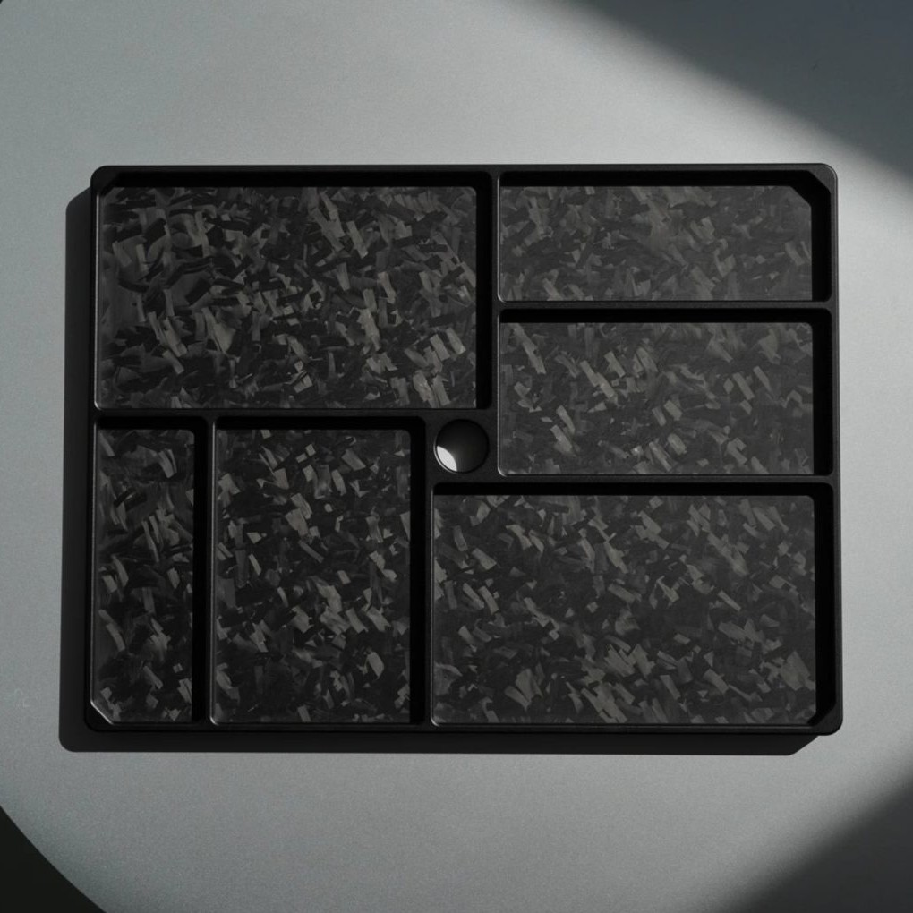Sleek all-aluminum EDC tray by aboStudio. Minimalist design, perfect for desktop setups. Organize essentials with style and durability.