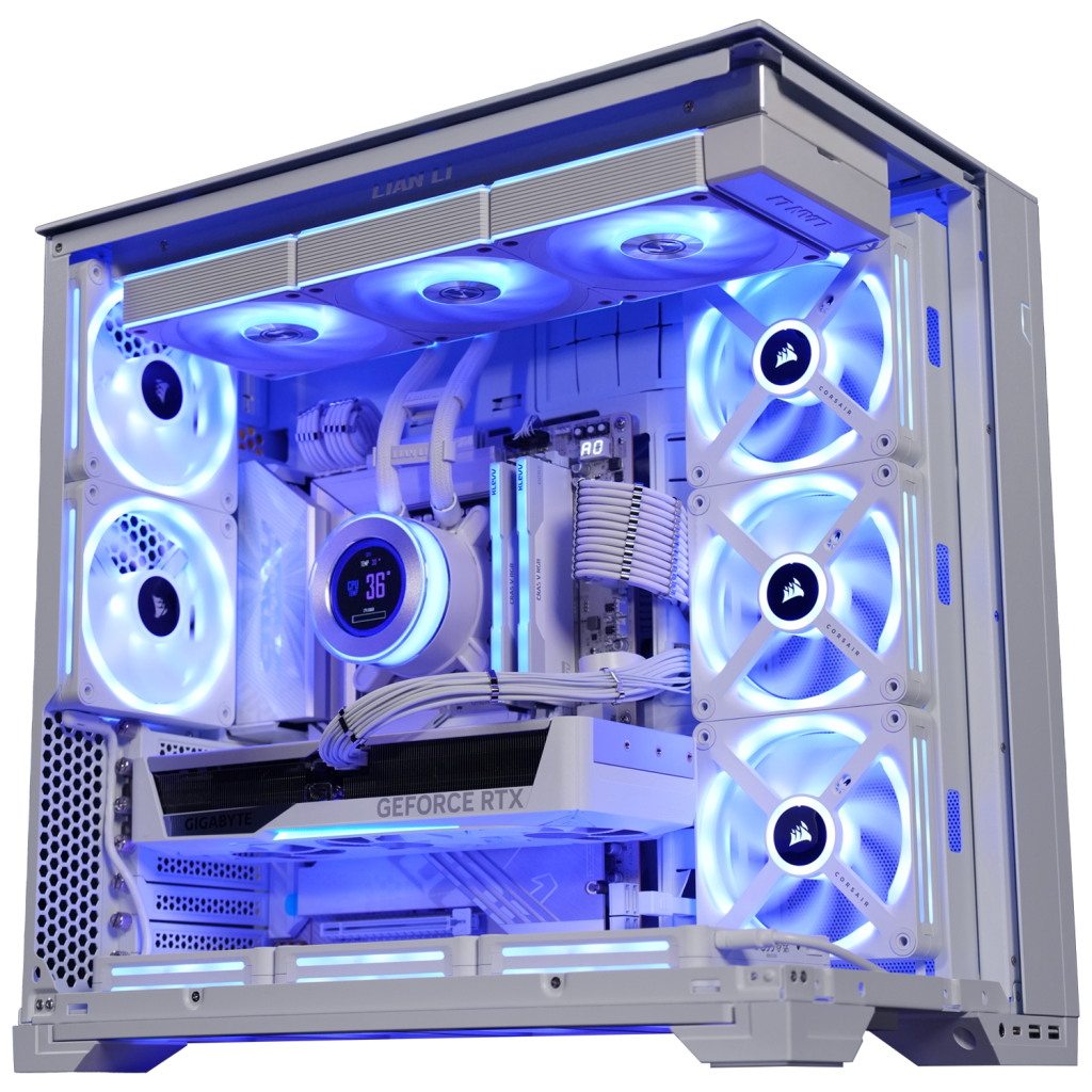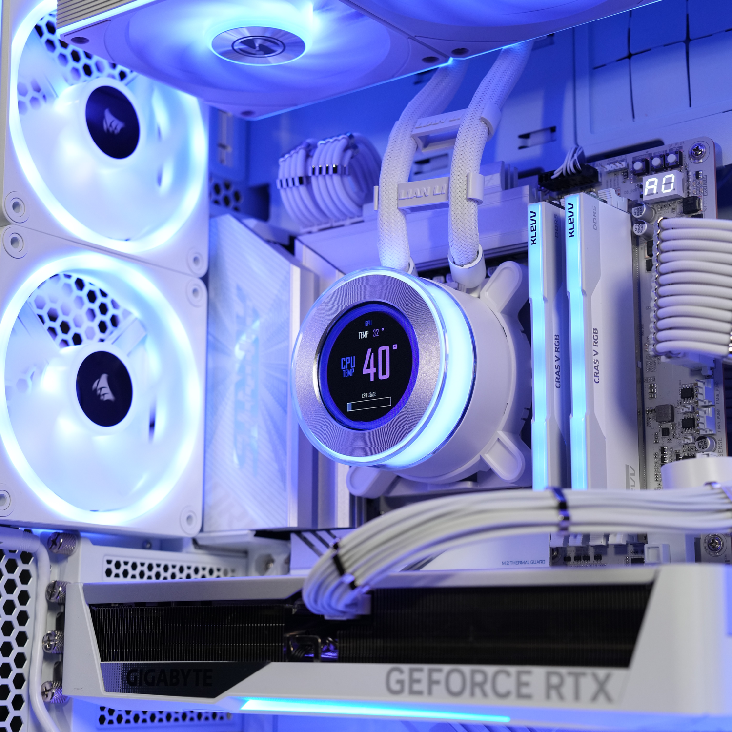 Featuring 32GB KLEVV DDR5 RAM, a 1TB boot drive, and an additional 2TB storage drive, the Whiteout Gaming PC ensures lightning-fast load times, seamless multitasking, and plenty of space for games and media. Advanced cooling is handled by the Lian Li Hydroshift II LCD-C 360CL AIO cooler, 3 Lian Li fans, and 8 Corsair QX120mm fans, keeping your system icy even under intense gaming sessions.