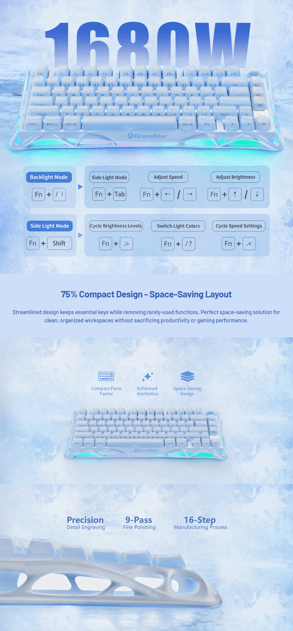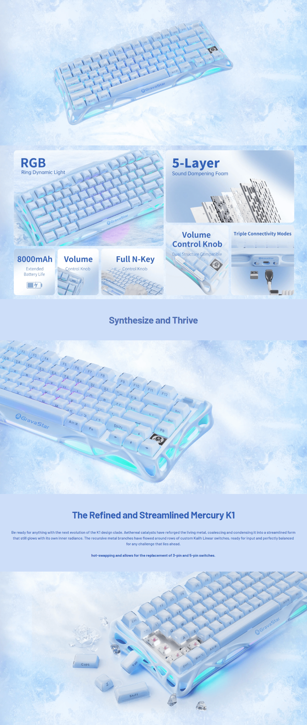 GravaStar Mercury K1 Gaming Keyboard_Special Edition_Ice Blue