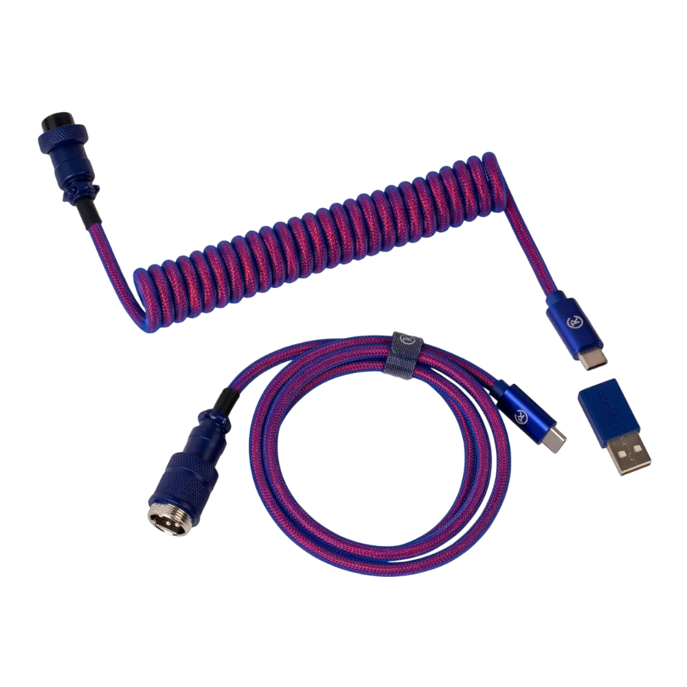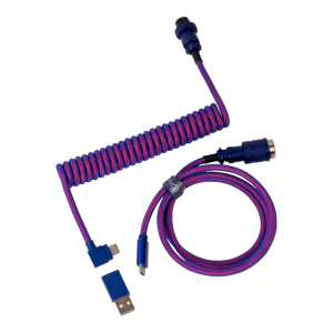 Keychron custom coiled cable has 4 color options to select from: Red, Purple, Rainbow Plated Blue, and Rainbow Plated Black