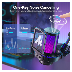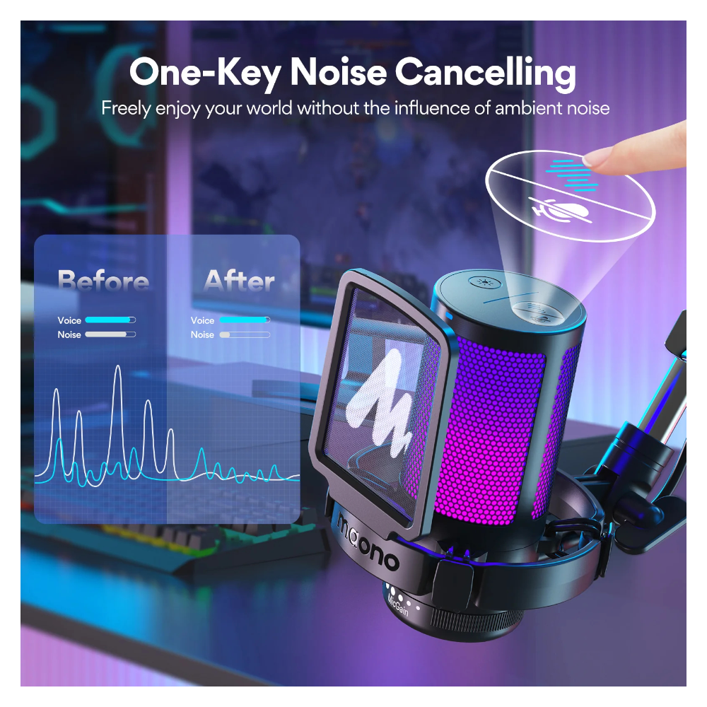 This high-sensitivity cardioid USB microphone offers one-tap noise reduction, zero-latency monitoring, and USB/USB-C connectivity for effortless setup. With optional RGB ambient lighting and clear voice capture, it’s a great choice for gamers, podcasts, streaming, and content creation.