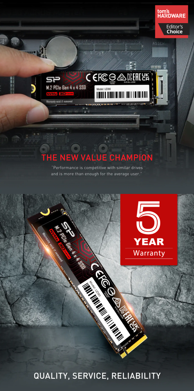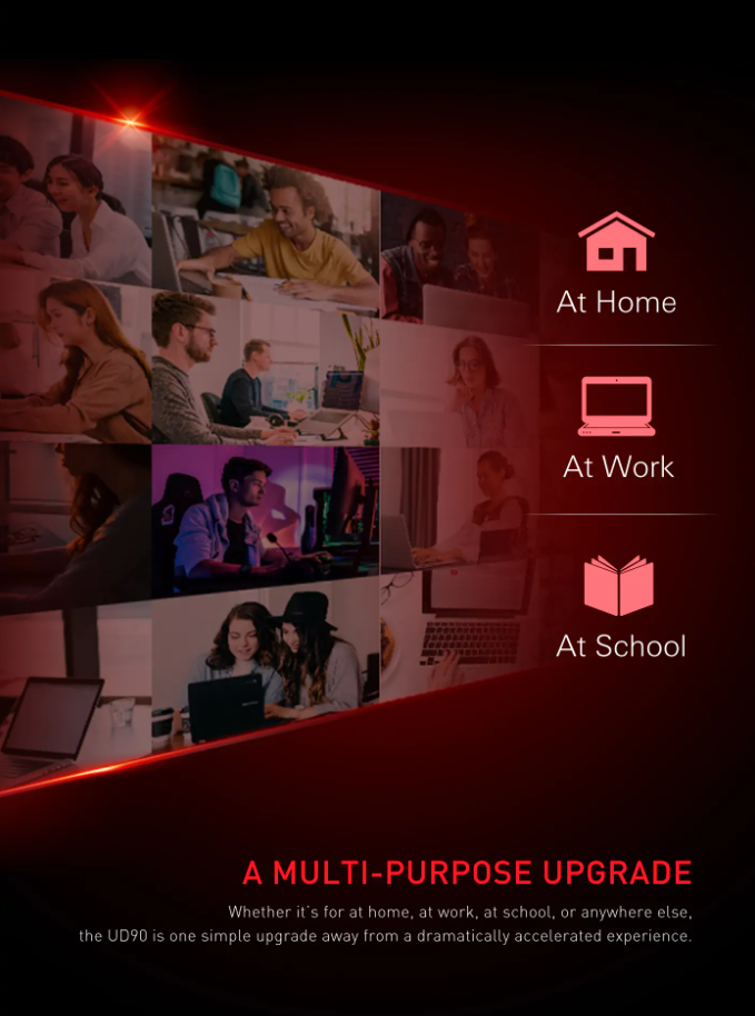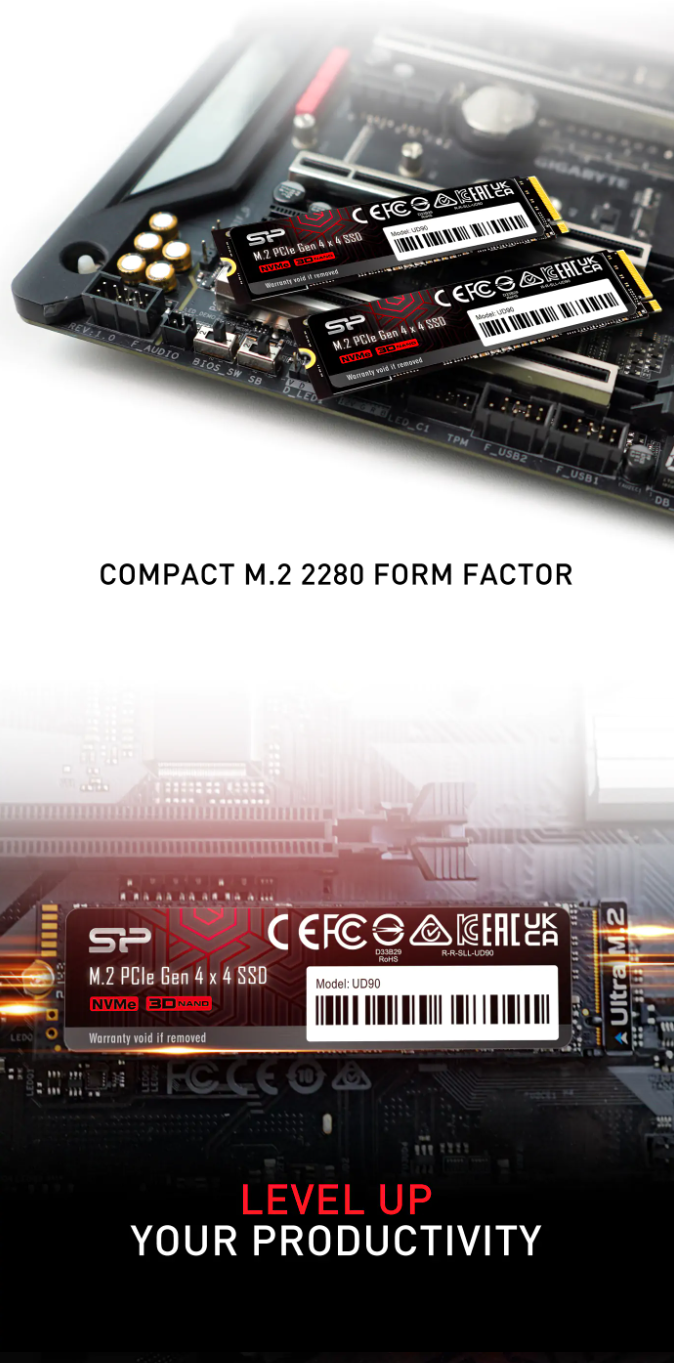 The UD90 boosts multitasking with PCIe 4.0 bandwidth—nearly twice that of PCIe 3.0—for faster downloads and smoother performance. SLC caching enhances sequential and random read/write speeds, while LDPC coding ensures accurate, reliable data access. With RAID support and built-in end-to-end data protection, your files stay safeguarded even in unexpected failures. Backed by a 5-year limited warranty, the UD90 delivers fast, dependable storage for modern workloads.