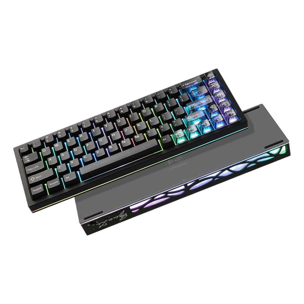 This aluminum mechanical keyboard features a unique hollow design and dynamic RGB lighting with transparent keycaps for a stunning visual experience. With tri-mode connectivity and a powerful 8000mAh battery, it works seamlessly across Windows and Mac. The gasket-mounted structure and hot-swappable PCB deliver a smooth, customizable typing feel, while QMK/VIA support offers full programming control.